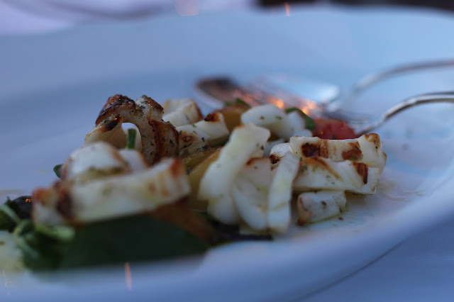 We tried a few things but some standout dishes were seared tandoori scallops with pea puree, coconut milk and lemongrass, fresh grilled local calamari with oregano and lemon as well as the saffron risotto with octopus, eggplant chips and aged balsamic.